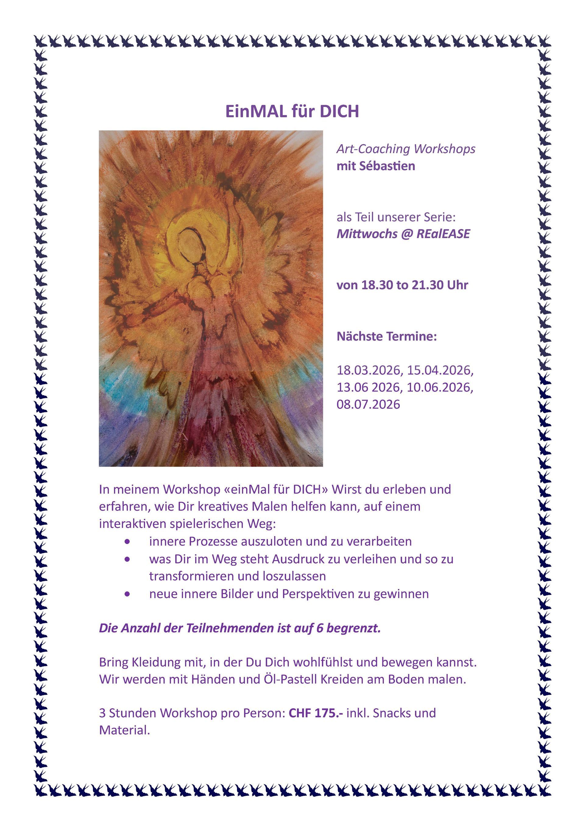 In meinem Workshop «einMal für DICH» wirst du erleben und erfahren, wie Dir kreatives Malen helfen kann, auf einem interaktiven spielerischen Weg: