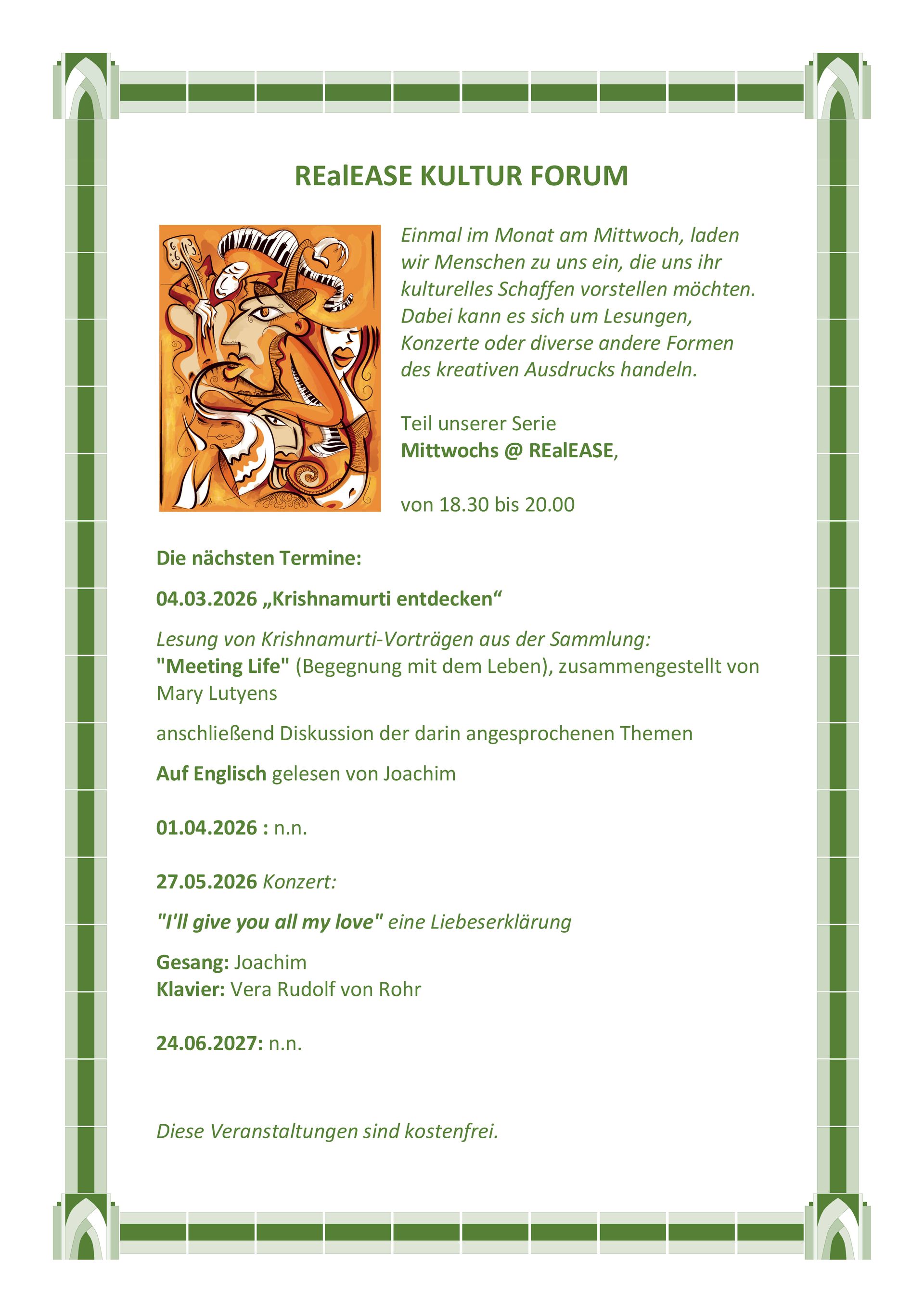 Einmal im Monat am Mittwoch, laden wir Menschen zu uns ein, die uns ihr kulturelles Schaffen vorstellen möchten.